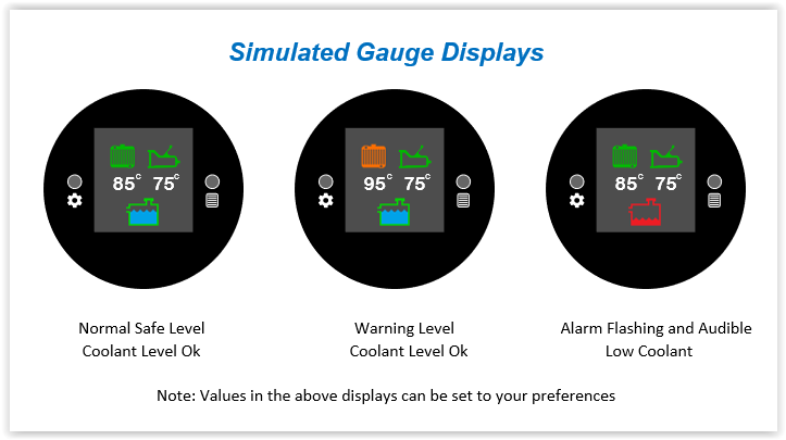 The Coolant and Transmission Temperature Gauge monitors and provides early warning of overheating or low coolant level with a visual and audible alarms.