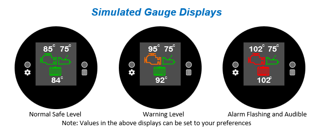 Standard temperature indicators sometimes provide engine temperature information. But if you’re focused on driving, you may miss the indicator going into the RED until it is too late and your engine or transmission is damaged.
