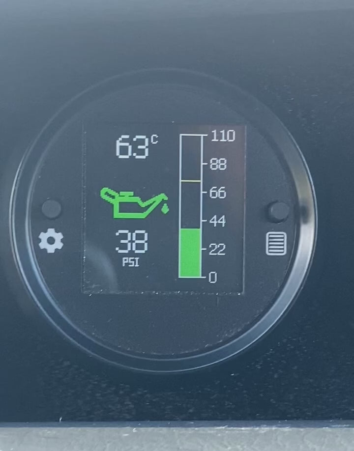 Maintaining normal oil pressure is critical to avoid damage to your engine components. Standard vehicle oil fault or fluid (oil or coolant) temperature indicators sometimes provide warning information. Most vehicles do not provide an audible alarm. If you are focused on driving, you may miss the indicator going into the RED until it is too late and your engine is damaged. Often standard oil warning indicators only provide a warning after there is a serious problem. If your oil pressure is lower than normal or the level drops for any reason, many indicators won’t show any warning until very late. You may not be aware that your engine is being damaged. Most vehicles do not have an alarm for high fluid (oil or coolant) temperature. If you are 4WD’ing or towing a caravan, boat, trailer etc, your engine will be working hard, increasing the oil or coolant temperature. If a high fluid temperature is not alarmed, you may not be aware of damage being caused by excessive heating. This gauge allows you to monitor and set alarms for both the oil pressure and fluid (Oil or Coolant) temperature during all driving conditions. The gauge uses digital technology and has a full colour screen to display pressure, temperature, settings and alarms. The Oil Pressure and temperature gauge can use the following sensors