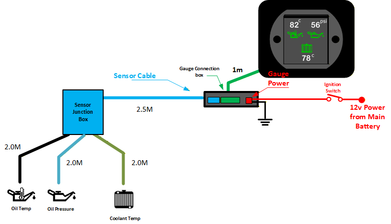 Oil Pressure, Oil Temperature and Coolant Temperature Dash Gauge